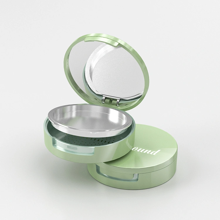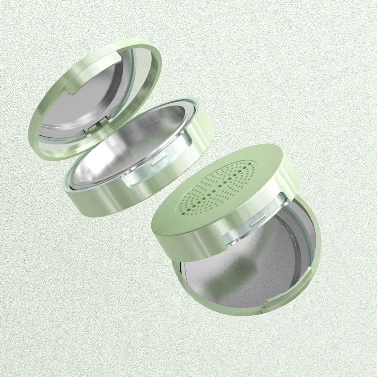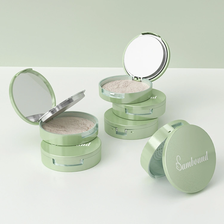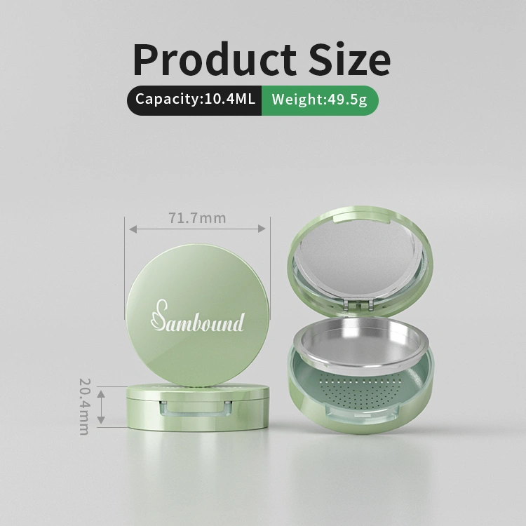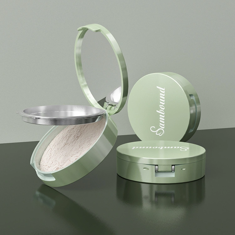 YR3010 setting powder compact with 40.4ML capacity and double-layer design. Functional and customizable cosmetic packaging for setting powders with convenient puff storage.