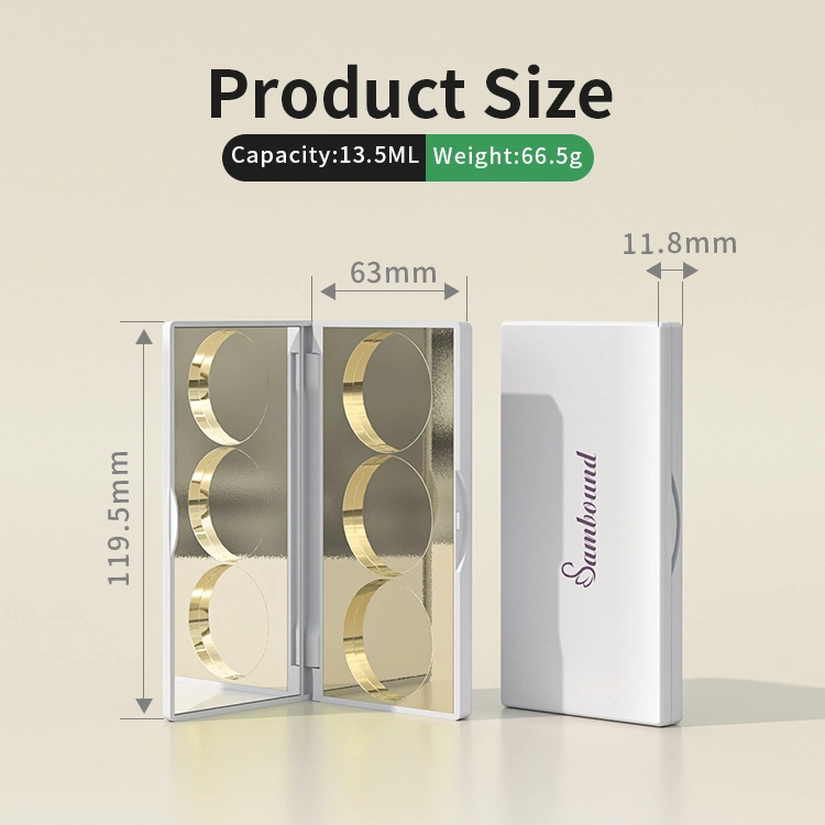 YR3020 eyeshadow palette with 3 round pan layout. Compact, elegant, and customizable with finishes, logo, and eco-material options — perfect for mini or travel-size eyeshadow packaging.