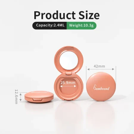 YR3108 mini round powder compact with 2.4ML capacity. Portable, elegant, and customizable packaging — ideal for mini blush or pressed powder cosmetics.