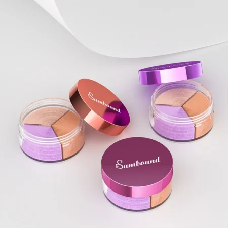 YR5072B round loose powder jar with 3 compartments. Practical and customizable packaging for multi-shade or multi-function powders, combining convenience and style.