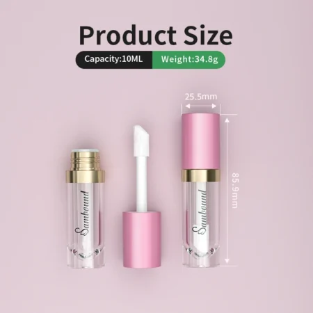 YR7013 lip gloss tube with 10ML capacity, designed for large-volume lip gloss packaging. Fully customizable with applicators, surface finishes, and branding options.