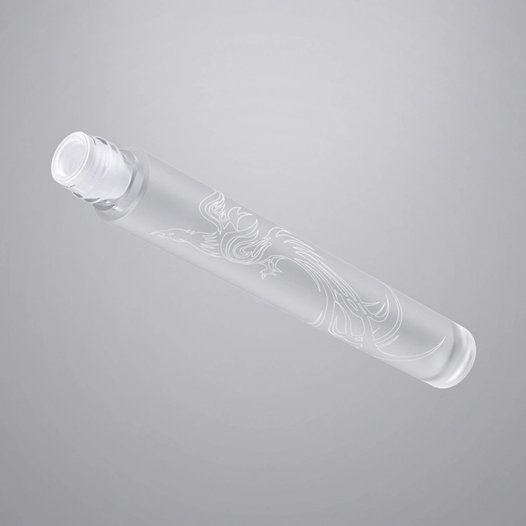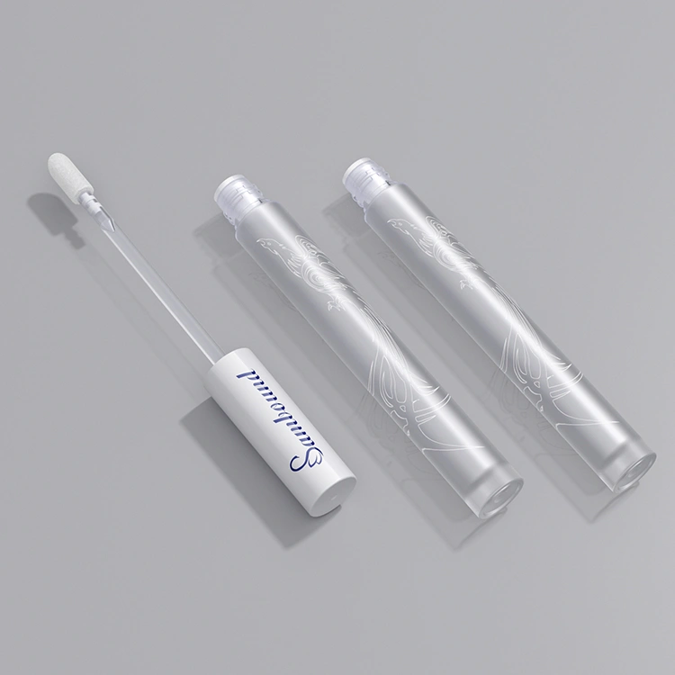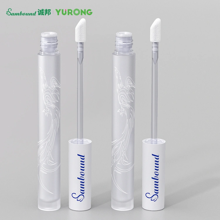 YR7096 lip gloss tube with a frosted transparent finish. Durable and stylish packaging option, customizable with applicators, surface treatments, and branding for beauty brands.