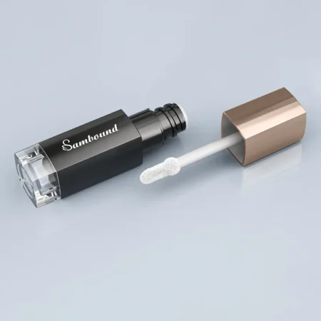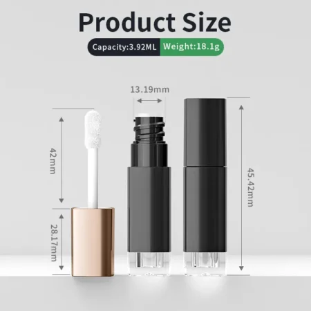 YR7100B transparent bottom lip gloss tube with 3.92ML capacity in a sleek black and gold combination. Durable, stylish, and customizable for premium cosmetic packaging projects.